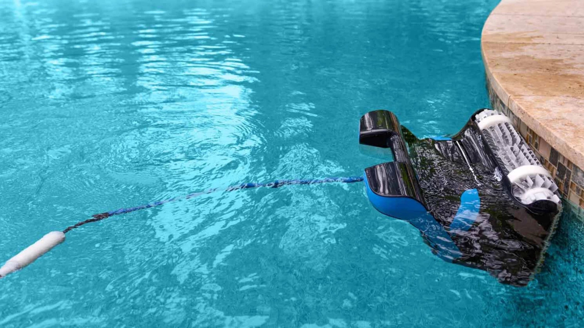 Disponible sur le Nautilus CC Plus et le Nautilus CC Supreme , le Le câble pivotant breveté de 60 pieds sans enchevêtrement permet au robot de se déplacer librement autour de la piscine, laissant le câble flottant vers le haut sans pli !
